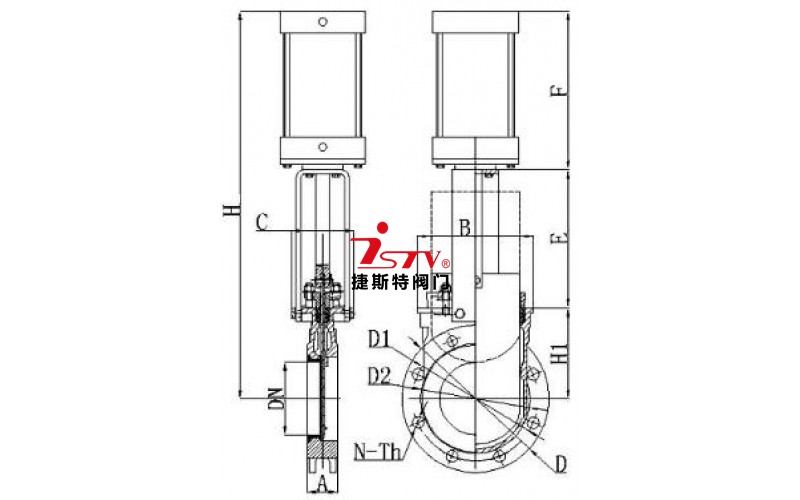 氣動陶瓷刀閘閥 外形尺寸 :